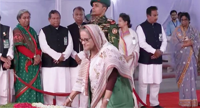 খবর জনতা ডেস্ক: ঐতিহাসিক মুজিবনগর দিবস উপলক্ষে বঙ্গবন্ধু শেখ মুজিবুর রহমানের প্রতি শ্রদ্ধা নিবেদন করেছেন প্রধানমন্ত্রী শেখ হাসিনা। বুধবার সকালে তিনি ধানমন্ডি ৩২ নম্বর বঙ্গবন্ধু স্মৃতি জাদুঘরের সামনে বঙ্গবন্ধুর প্রতিকৃতিতে