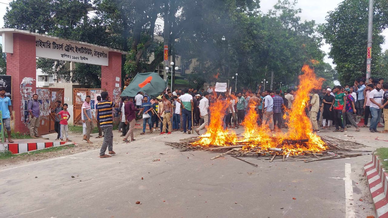 পরে আবার কোটা আন্দোলনকারী বালক উচ্চ বিদ্যায়ের সামনে কাট খড় জ্বালিয়ে সড়ক অবরোধ করে আন্দোলন করতে থাকে। এতে শহর জুড়ে থমথম পরিস্থিতি বিরাজ করছে। এদিকে পরিস্থিতি সামাল দিতে পুলিশ প্রশাসন কাজ করছেন।