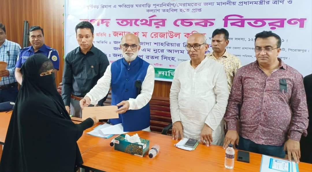 নাজিরপুর উপজেলায় ঘূর্ণিঝড় রিমালে ক্ষতিগ্রস্ত পরিবারগুলোর মধ্যে টিন ও নগদ অর্থ বিতরণ