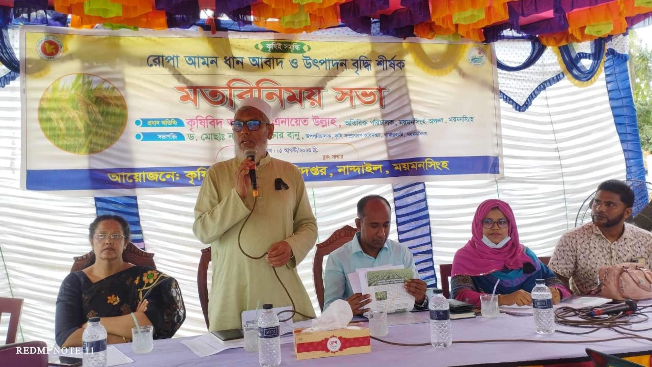 নান্দাইল উপজেলা অতিরিক্ত কৃষি কর্মকর্তা নাদিয়া ফেরদৌসীর সঞ্চালনায় প্রধান অতিথি হিসেবে বক্তব্য রাখেন