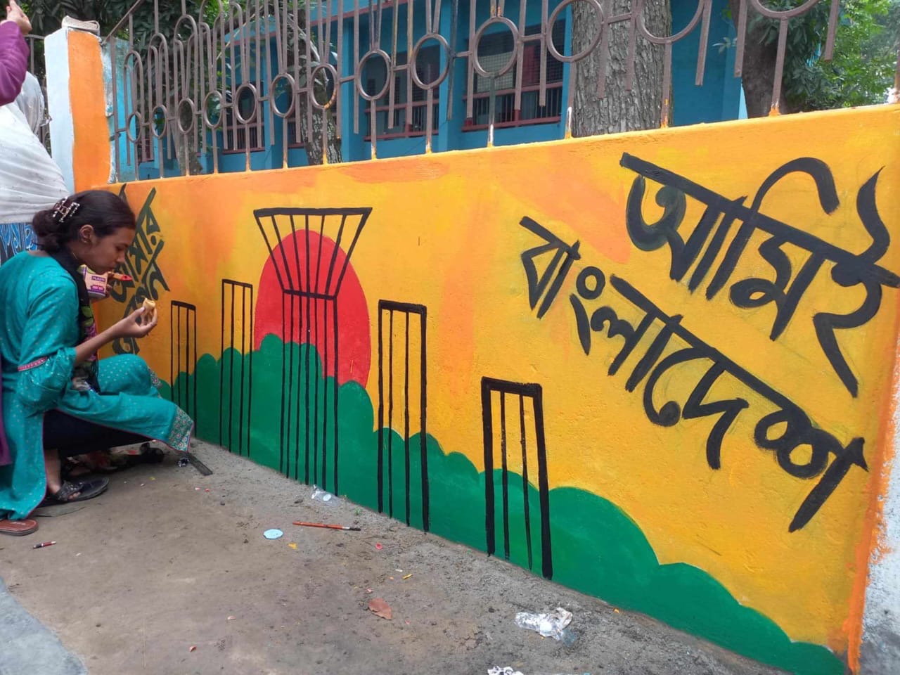 সিংড়ায় দেয়াল লিখন ও আলপনায় শিক্ষার্থীরা