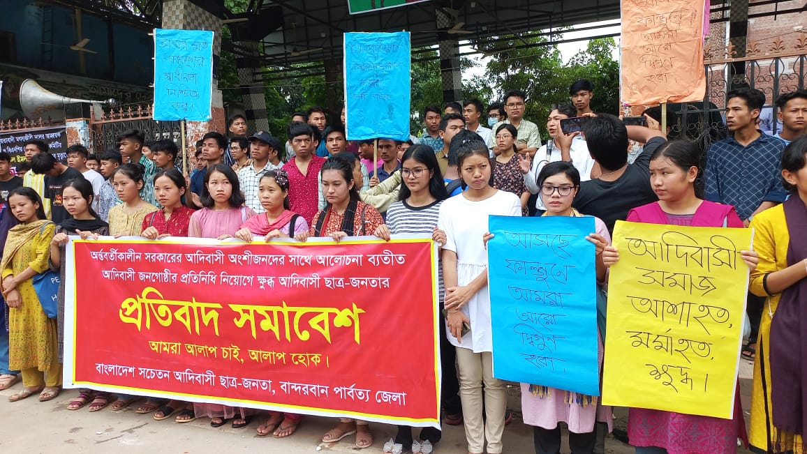 আলোচনা ব্যতীত আদিবাসী জনগোষ্ঠীর প্রতিনিধি নিয়োগ করার প্রতিবাদে বান্দরবানে প্রতিবাদ সমাবেশ