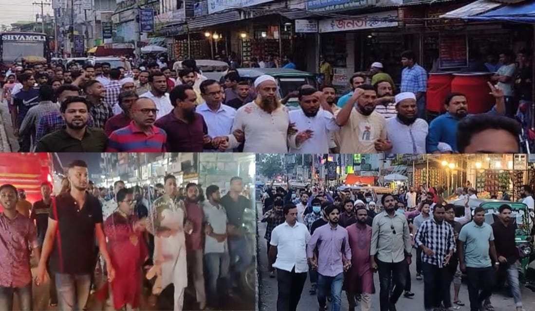 এসব কিছু ছাড়িয়ে গেছে সোমবার বিকেলে। আসরের নামাজের পর হঠাৎ পৌরশহরে উত্তেজনা ছড়িয়ে পড়ে। এদিন উপজেলা আওয়ামীলীগের যুগ্ম সম্পাদক ও উপজেলা চেয়ারম্যান আবুল কাশেম পল্লবের নেতৃত্বে একটি মিছিল বের করেন তার অনুসারীরা। কিছুক্ষণ পরই পাল্টা মিছিল বের ইসলামী ছাত্র শিবির। এতে নেতৃত্ব দেন উপজেলা ছাত্র শিবিরের সভাপতি আহবাব হোসেন মুরাদ। বাদ মাগরিব পৃথক মিছিল বের করে উপজেলা ও পৌর বিএনপি। এতে উপজেলা বিএনপির সাধারণ সম্পাদক সরওয়ার হোসেন, পৌর বিএনপির সিনিয়র সহ-সভাপতি কবির আহমদ, উপজেলা শাখার প্রচার সম্পাদক ফয়েজ আহমদ প্রমুখ।