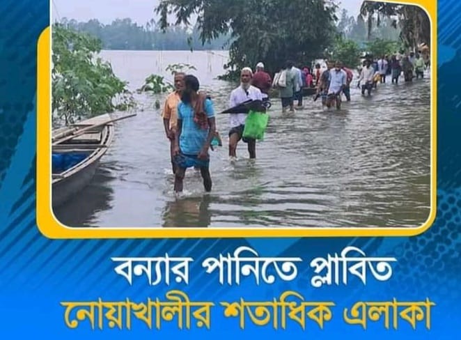 নোয়াখালী কবিরহাট উপজেলার পৌরসভা ও বিভিন্ন ইউনিয়নে বন্যার পানিতে তলিয়ে গেছে