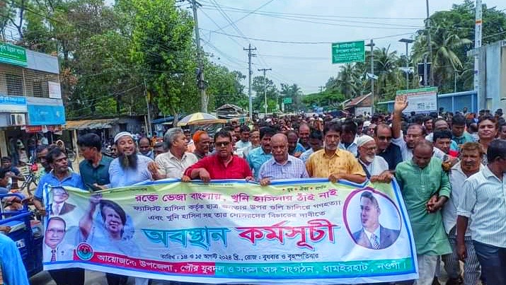 ধামইরহাটে বিএনপির বিক্ষোভ ও অবস্থান কর্মসূচিতে জনতার ঢল