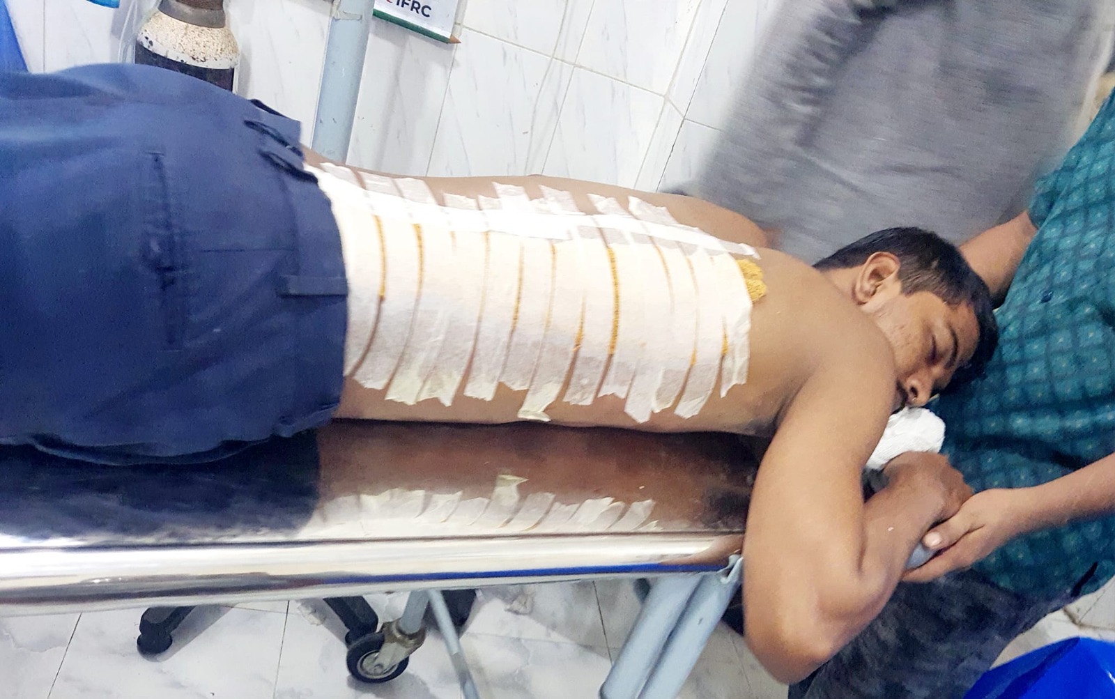 কর্তব্যরত চিকিৎসক জানান, মাসুদের শরীরের বিভিন্ন স্থানে ৩২টি সেলাই দেওয়া হয়েছে।