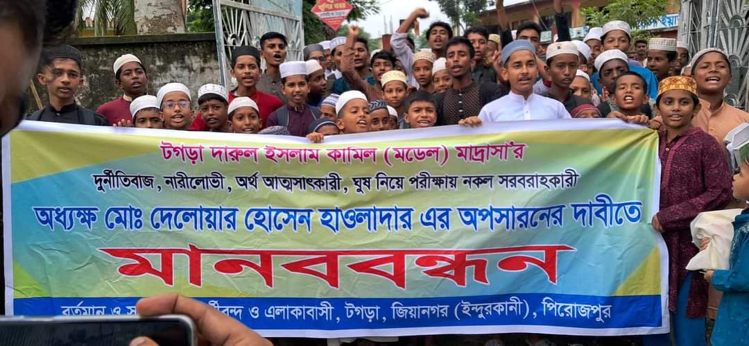 বৃহষ্পতিবার সকালে টগড়া মাদ্রাসার প্রধান সড়কে ঘন্টা ব্যাপি মানব বন্ধন করেন। এসময় বক্তব্য রাখেন বৈষম্য বিরোধি ছাত্র নেতা সাজিদ, ইব্রাহীম,ইমরান, মাহমুদ,সোহেল, আতিক, মাদ্রাসার প্রভাষক আব্দুল্লাহিল মাহমুদ, মাও: নুরুল ইসল ফিরোজি, মাহবুব বিল্লাহ,মাও মোস্তফা, হারিনার রশিদ,মাহবুব হাসান প্রমুখ।