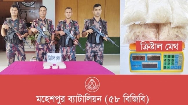 শেখ রাকিব চুয়াডাঙ্গা জেলা প্রতিনিধি। ……….………………….. চুয়াডাঙ্গা জেলার জীবননগর উপজেলার সীমান্ত থেকে ( ১৫ ) কোটি (২০) লাখ টাকা মূল্যের ৩ কেজি ৪০ গ্রাম মাদক ‘ক্রিস্টাল ম্যাথ আইস’ উদ্ধার করেছে