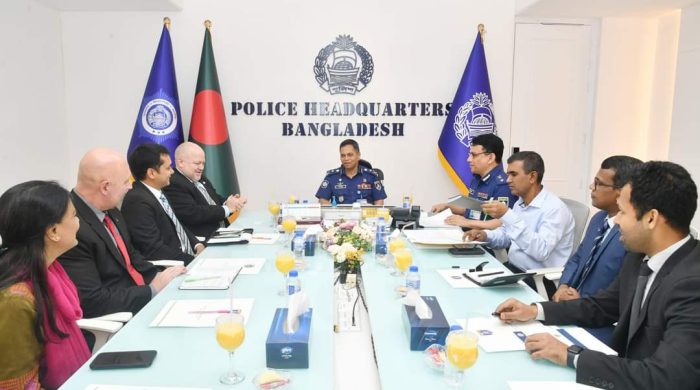 ইন্সপেক্টর জেনারেল অব পুলিশ, বাংলাদেশ মোঃ ময়নুল ইসলাম, এনডিসি এর সাথে আজ বৃহস্পতিবার বিকালে পুলিশ হেডকোয়ার্টার্সে ঢাকাস্থ মার্কিন দূতাবাসের রিজিওনাল সিকিউরিটি অফিসার ড্যানিয়েল ব্লিকমোর (Daniel Bleakmore) এর নেতৃত্বে ছয় সদস্যের read more