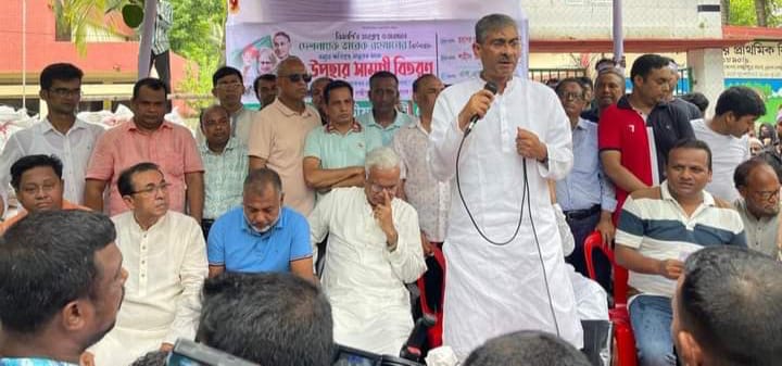 পরে তিনি বন্যায় দুর্গতদের মাঝে খাদ্য সামগ্রী বিতরণ করেন।