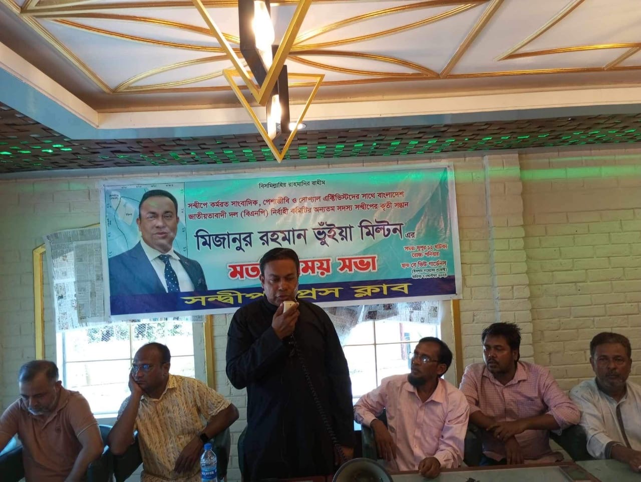 মতবিনিময় সভায় কেন্দ্রীয় বিএনপি নেতা মিল্টন ভূইয়া বলেন সংবাদ গণমাধ্যম হলো রাষ্ট্রের চতুর্থস্বম্ব, গণমাধ্যম ছাড়া একটি রাষ্ট্র চিন্তা করা যায় না, সংবাদ পত্রের মাধ্যমে আপনারা দেশ ও জাতির কল্যানে কাজ করছেন নিয়মিত। আপনারা জানেন দীর্ঘ ৯ বছর পর আমি বাংলাদেশ ও নিজ জন্মভূমি সন্দ্বীপে ফিরছি, কারণ ফ্যাসিষ্ট সরকার দীর্ঘদিন আমাকে দেশে আসতে দেয় নি, সৈরাচারি শেখ হাসিনার পুত্র সজীব ওয়াজেদ জয় কে অপহরণের নাটক সাজিয়ে আমাকে দন্ড দিয়েছে। ইনশাআল্লাহ জনগণের দোয়ায় আমি দেশে ফিরে এসেছি। এক প্রশ্নের জবাবে তিনি বলেন আমি আমৃত্যু সন্দ্বীপের মানুষের সেবা করে যাব নৌ যাতায়াত ও সীমানা নির্ধারণ সহ দ্বীপের যে সমস্ত সমস্যা রয়েছে তা নিয়ে সরকারের উচ্চ মহলের সাথে আলোচনা করা সমাধান করার চেষ্টা করব।