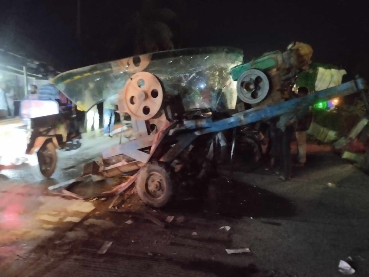 মিঠাপুকুরে বাসের সঙ্গে ইট ভাঙ্গা মেশিনের সংঘর্ষে নিহত ২