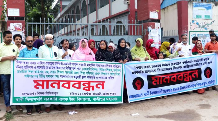 অদ্য ১৮/০৯/২০২৪ রোজ বুধবার দুপুর ১২.০৫ মিনিটে গাজীপুর শহরে রাজবাড়ী রোডে রাণী বিলাসমণি সরকারি বালক উচ্চ বিদ্যালয় ও জয়দেবপুর সরকারি বালিকা উচ্চ বিদ্যালয়ের শিক্ষকদের উপস্থিতিতে শিক্ষা ভবন ঢাকায় সেসিপ প্রকল্পের