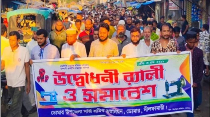 সোহেল রানা, ডোমারঃ “মুক্তির মূলমন্ত্র,ইসলামী শাসনতন্ত্র” এই স্লোগানকে সামনে রেখে নীলফামারী ডোমারের জোড়াবাড়ীতে ইসলামী আন্দোলন বাংলাদেশ এর সম্মেলন অনুষ্ঠিত হয়েছে আজ। সোমবার(৯ই সেপ্টেম্বর) বিকালে ইউনিয়নের মিরজাগঞ্জ রেল-স্টেশন বাজারে এ সম্মেলনে