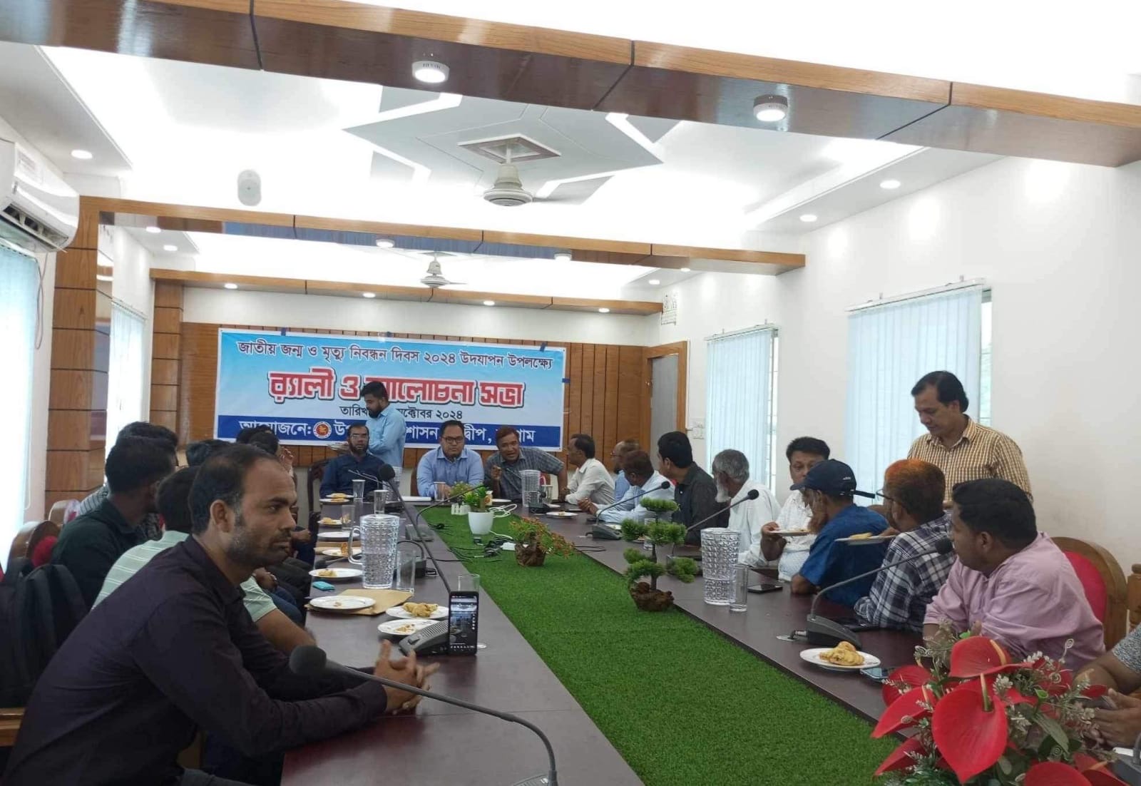 সন্দ্বীপ উপজেলা পরিষদের প্রশাসক ও উপজেলা নির্বাহী অফিসার রিগ্যান চাকমার সভাপতিত্বে অনুষ্ঠানে বক্তব্য রাখেন, সন্দ্বীপ উপজেলা স্বাস্থ্য ও পরিবার কল্যাণ কর্মকর্তা ডাক্তার মানস বিশ্বাস, উপজেলা শিক্ষা অফিসার খোরশেদ আলম, কৃষি ব্যাংক ব্যবস্হাপক আক্তারুজ্জামান সুজন, মগধরা ইউপি প্যানেল চেয়ারম্যান মোঃ ইলিয়াছ, গাছুয়া ইউপির প্যানেল চেয়ারম্যান রোকেয়া বেগম, সারিকাইত ইউপি সচিব জাবেদ, মাইটভাংগা ইউপি সচিব জিতু বড়ুয়া, বাউরিয়া ইউপির প্যানেল চেয়ারম্যান আবদুল গনি, বাংলাদেশ প্রেস ক্লাব সন্দ্বীপ শাখার সভাপতি ইলিয়াছ সুমন প্রমুখ, আলোচনা সভায় ইউনিয়ন পরিষদের সচিব, বিভিন্ন ইউনিয়নের মেম্বার পৌরসভার কর্মকর্তা ও সদস্যবৃন্দ উপস্থিত ছিলেন। জন্ম মৃত্যু নিবন্ধন যাতে সঠিকভাবে হয় এ বিষয়ে ইউনিয়ন ও পৌরসভাকে গুরুত্ব দেওয়ার কথা বলা হয়।