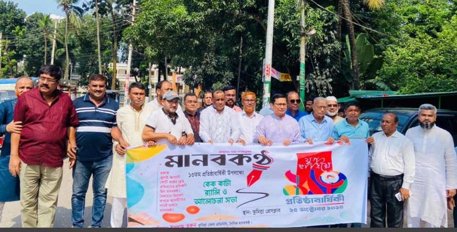 কেককাটা র্যালী ও আলোচনা সভা আনন্দ মুখর পরিবেশে কুমিল্লা প্রেসক্লাবের হল রুমে দেশের শীর্ষ দৈনিক মানবকন্ঠের ১৩ তম প্রতিষ্ঠা বার্ষিকী পালন করা হয়েছে।