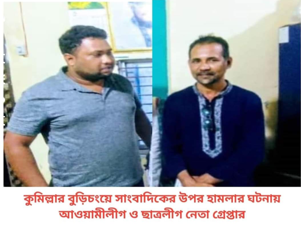 কুমিল্লার বুড়িচংয়ে দৈনিক কুমিল্লা প্রতিদিনের সম্পাদক ও দৈনিক সবুজ বাংলাদেশ পত্রিকার কুমিল্লা জেলা প্রতিনিধি শরিফুল ইসলাম সুমন এর উপর হামলা ও মারধরের ঘটনায় আওয়ামী লীগ ও ছাত্রলীগ নেতাকে গ্রেফতার করেছে পুলিশ।