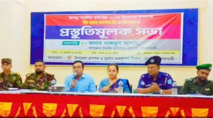 সোহেল রানা, ডোমারঃ শারদীয় দুর্গাপূজা সুষ্ঠুভাবে উদযাপনের লক্ষ্যে নীলফামারীর ডোমার উপজেলা প্রশাসনের উদ্যোগে এক প্রস্তুতি সভা ও সরকারিভাবে প্রত্যেক মণ্ডপের জন্য বরাদ্দকৃত চালের ডিও বিতরণ করা হয়েছে। রবিবার (৬ অক্টোবর)