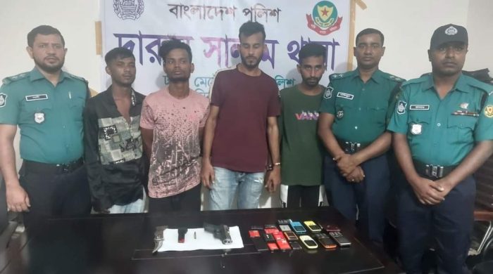 রাজধানীর দারুসসালাম থানা পুলিশ ও সেনা বাহিনীর একটি দল যৌথ অভিযান পরিচালনা করে বিদেশি পিস্তল ও গুলিসহ ৪ জনকে গ্রেফতার করেছে। গ্রেফতারকৃতরা হলো- মোঃ হোসাইন, মোঃ রিফাত ওরফে নিপু, মোঃ