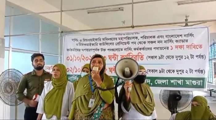 মো: আহসান হাবীব, মাগুরা প্রতিনিধি এক দফা দাবিতে মঙ্গলবার সকাল ৯ টা থেকে দুপুর ১২ টা পর্যন্ত তিন ঘন্টা কর্মবিরতি পালন করেছে মাগুরা জেলা শাখার নার্সিং ও মিডওয়াইফারি সংস্কার পরিষদ।