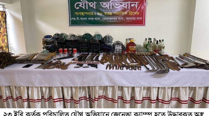 ২৯ সেপ্টেম্বর ২০২৪ (রবিবার): আজ (২৯ সেপ্টেম্বর ২০২৪) বাংলাদেশ সেনাবাহনীর ৪৬ স্বতন্ত্র পদাতিক ব্রিগেডের নির্দেশনায় সেনাবাহিনী, পুলিশ ও র্যাব এর সমন্বয়ে রাজধানীর মোহাম্মদপুরস্থ জেনেভা ক্যাম্পে যৌথ বাহিনী কর্তৃক অভিযান পরিচালনা
