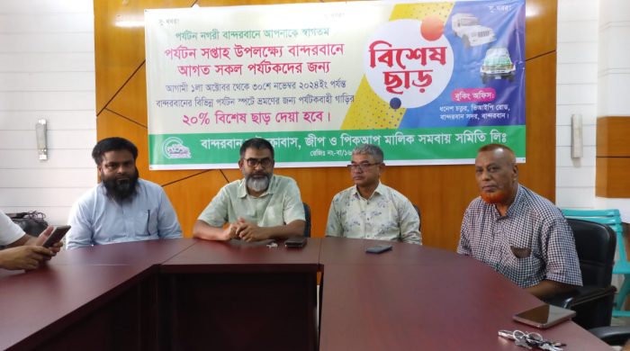 পর্যটকদের পার্বত্য জেলা বান্দরবান ভ্রমনে আরো সাশ্রয়ী ভ্রমনের লক্ষ্যে বান্দরবানে আগামী ১লা অক্টোবর থেকে ৩০ নভেম্বরের পর্যন্ত ২মাস ২০ শতাংশ ছাড় দেয়া হয়েছে। রবিবার (২৯ সেপ্টেম্বর) সকালে বান্দরবান প্রেসক্লাবের হলরুমে