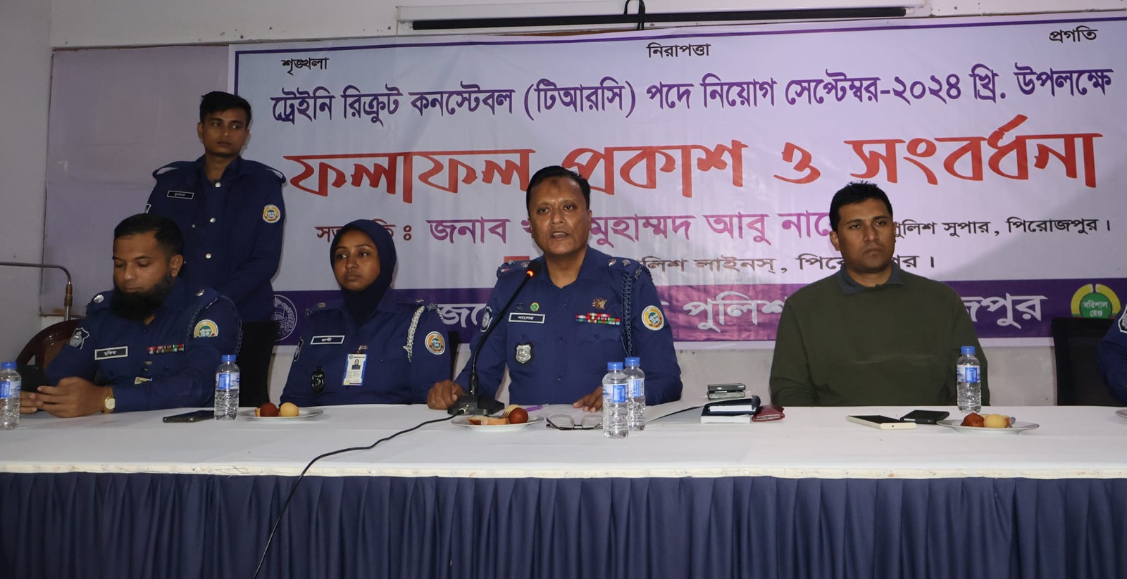 বুধবার (৪ ডিসেম্বর) রাতে পিরোজপুর জেলা পুলিশ লাইনস ড্রিল সেডে জেলা পুলিশ সুপার ও টিআরসি নিয়োগ বোর্ডের সভাপতি খান মুহাম্মদ আবু নাসের পুলিশ কনস্টবল রিক্রুটমেন্ট-২০২৪ এর ফলাফল ঘোষণা করেন।