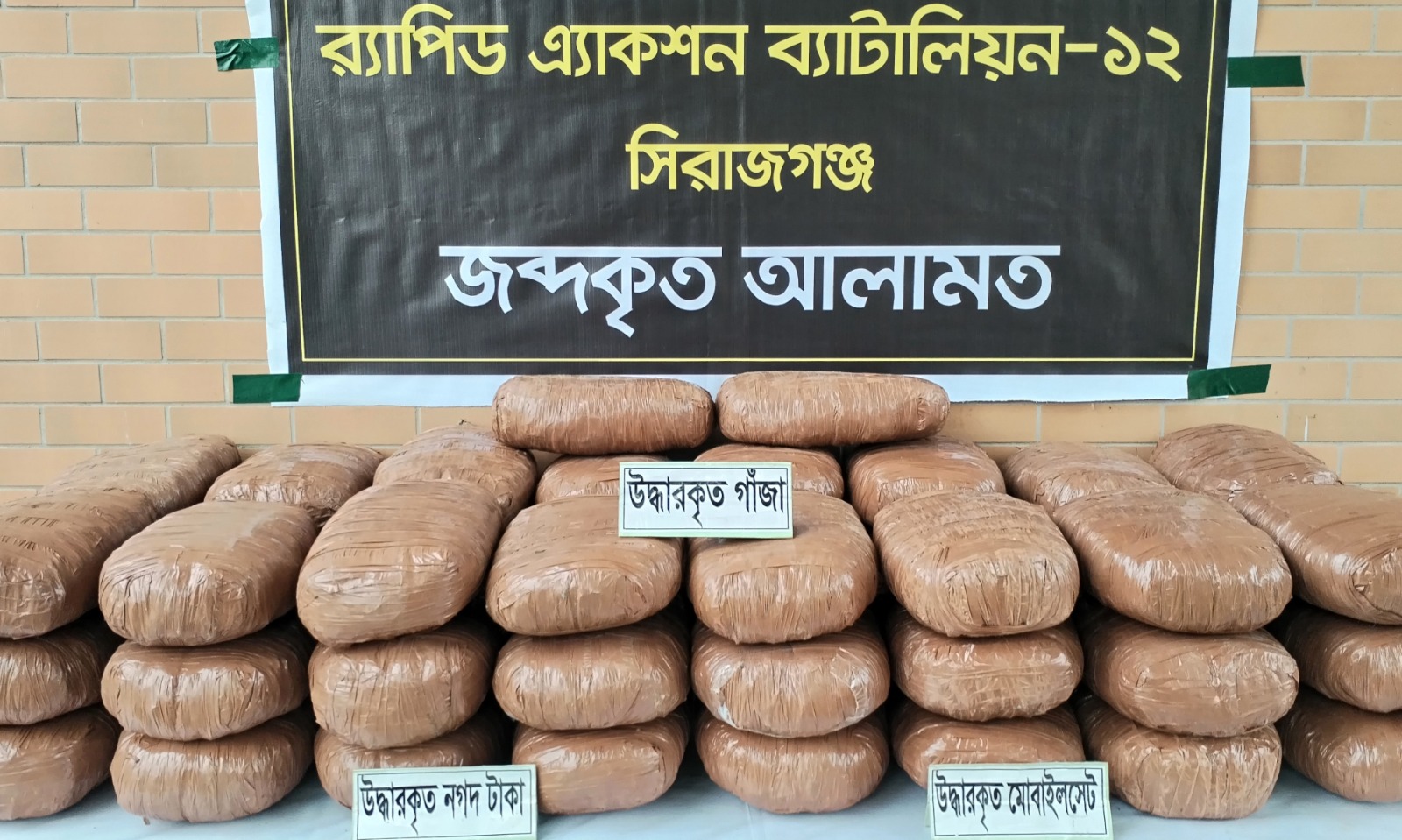 সিরাজগঞ্জ সদর উপজেলার পঞ্চসারটিয়া এলাকায় অভিযান চালিয়ে ১০৫ কেজি