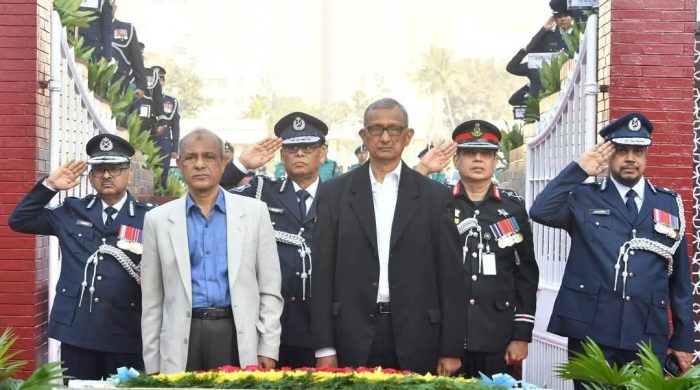 মহান বিজয় দিবস-২০২৪ উপলক্ষে রাজারবাগ পুলিশ লাইনসে অবস্থিত পুলিশ স্মৃতিসৌধে শহীদ পুলিশ সদস্যদের প্রতি শ্রদ্ধা জানিয়েছেন স্বরাষ্ট্র উপদেষ্টা লেফটেন্যান্ট জেনারেল মোঃ জাহাঙ্গীর আলম চৌধুরী, এনডিসি, পিএসসি (অব.), প্রধান উপদেষ্টার