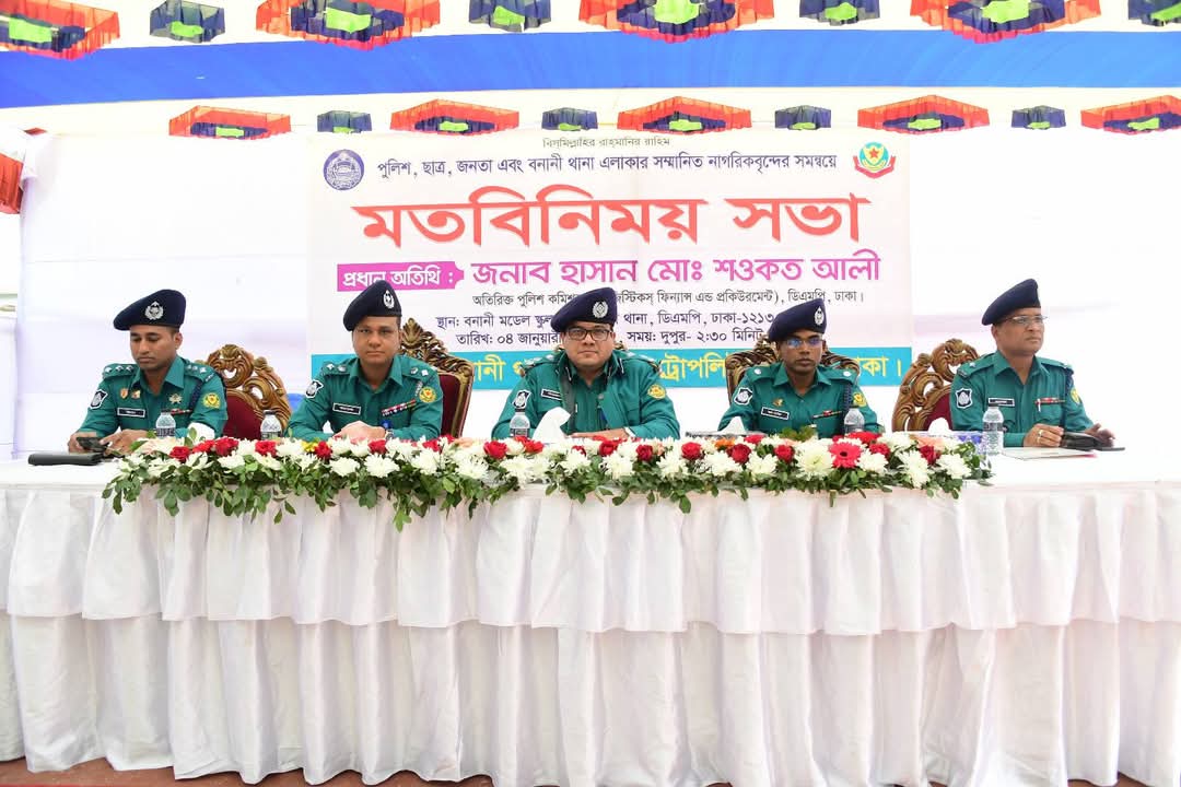 শনিবার (৪ জানুয়ারি ২০২৪ খ্রি.) বিকেলে বনানী মডেল স্কুল মাঠে পুলিশ, ছাত্র-জনতা ও সম্মানিত নাগরিকবৃন্দের সমন্বয়ে আয়োজিত এক মতবিনিময় সভায় প্রধান অতিথির বক্তব্যে এসব কথা বলেন তিনি।