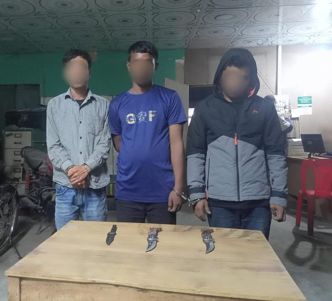 গ্রেফতারকৃতরা হলো- ১। মোঃ রনি (২৯), ২। মোঃ হুমায়ুন কবির (২৫) ও ৩। মোঃ আনোয়ার (৪০) । এ সময় তাদের হেফাজত হতে দুটি স্টিলের সুইচ গিয়ার চাকু ও একটি স্টিলের চাকু উদ্ধার করা হয়।
