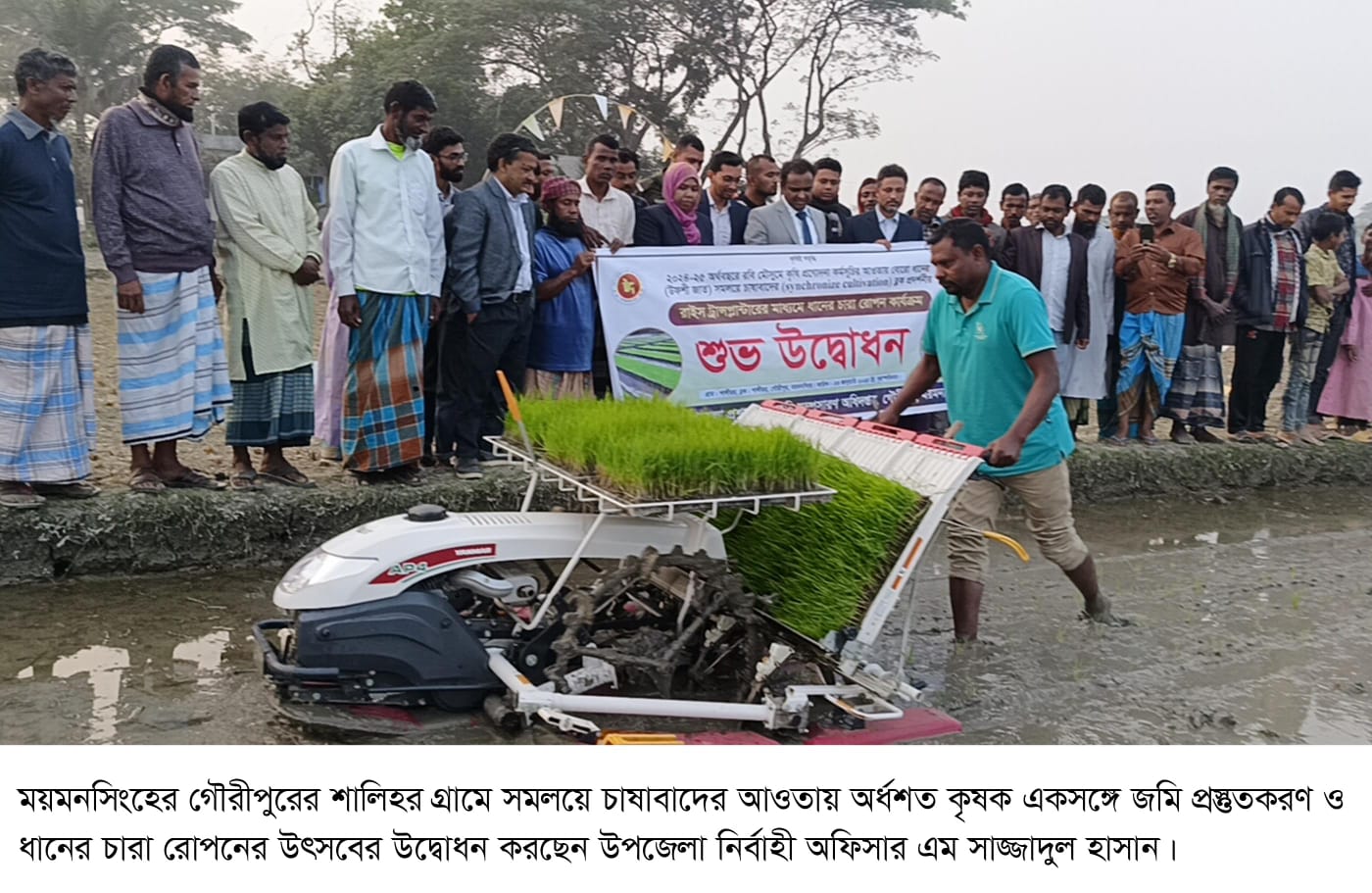 গৌরীপুরে কৃষকের একতায় ফসলের সমলয় ॥ বাঁচবে শ্রম-কমবে খরচ-বাড়বে ফলন মেশিনে রোপন হচ্ছে ধানের চারা
