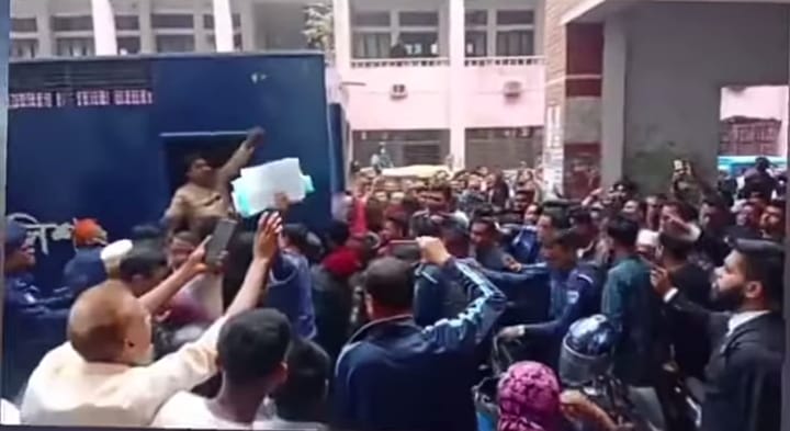 রোববার (২ ফেব্রুয়ারি) দুপুরে জেলা জজ আদালত প্রাঙ্গণে এ ঘটনা ঘটে।শুনানি শেষে আওয়ামী লীগ ও ছাত্রলীগের কয়েক নেতাকে প্রিজনভ্যানে করে কারাগারে নেওয়া হচ্ছিল।