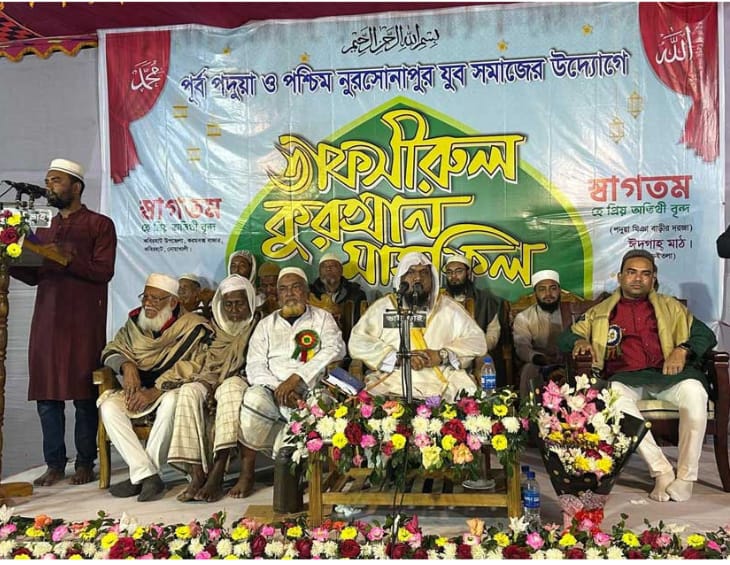 মাদক, শিরক থেকে নিজের গ্রামকে রক্ষার জন্য ব্যতিক্রমী উদ্যোগ নিয়েছে নোয়াখালীর কবিরহাট উপজেলার নরোত্তমপুর ইউনিয়নের পূর্ব পদুয়া ও পশ্চিম নুরসোনাপুর গ্রামের যুবসমাজ। ওই এলাকার যুবকেরা মাদক, শিরকের বিরুদ্ধে স্থানীয়দের মাঝে সচেতনতা বাড়াতে উপজেলার পূর্ব পদুয়া ও পশ্চিম নুরসোনাপুর গ্রামের পদুয়া মিঞা বাড়ির ঈদগাহ মাঠে মঙ্গলবার রাতে তাফসীরুল কুরআন মাহফিল আয়োজন করে।