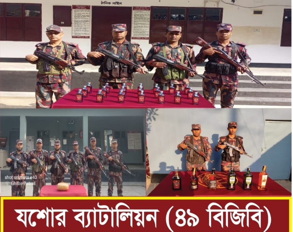 বেনাপোল সীমান্তে বিজিবি’র অভিযানে বিদেশী মদ ও গাঁজা আটক