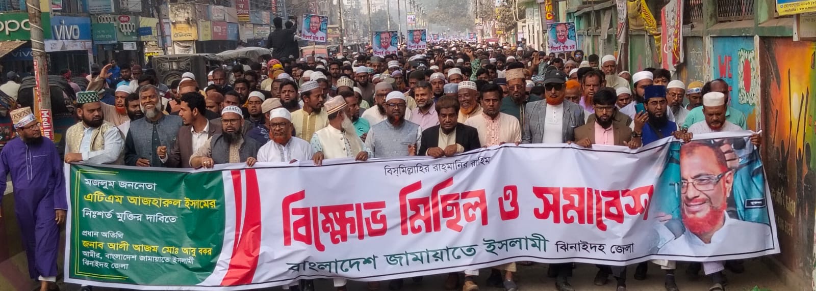 বাংলাদেশ জামায়াতে ইসলামী ও তার সহযোগী সংগঠন, ঝিনাইদহ জেলা জামায়াতের উদ্যোগে মঙ্গলবার একটি বিক্ষোভ মিছিল ও সমাবেশ অনুষ্ঠিত হয়। সাবেক ভারপ্রাপ্ত সেক্রেটারি জেনারেল এটিএম আজহারুল ইসলামের মুক্তির দাবিতে এই কর্মসূচি অনুষ্ঠিত হয়, যা কেন্দ্রীয় কর্মসূচির অংশ হিসেবে সংগঠিত হয়।