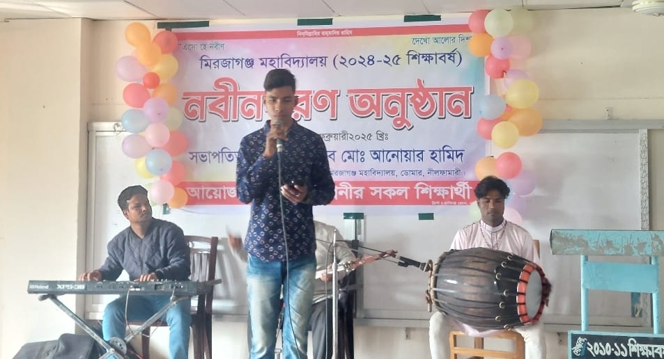 নীলফামারীর ডোমার উপজেলার মিরজাগঞ্জ মহাবিদ্যালয়ের ২০২৪-২৫ শিক্ষাবর্ষে একাদশ শ্রেনীতে ভর্তি হওয়া নবীন শিক্ষার্থীদের নবিন বরন অনুষ্ঠান অনুষ্ঠিত হয়েছে।