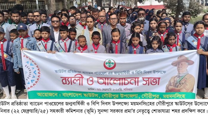 স্কাউটস প্রতিষ্ঠাতা ব্যাডেন পাওয়েলের জন্মবার্ষিকী ও বিপি দিবস উপলক্ষ্যে ময়মনসিংহের গৌরীপুরে স্কাউটস্রে উদ্যোগে শনিবার (২২ ফেব্রুয়ারি/২৫) বর্ণিল শোভাযাত্রা শহরের প্রধান সড়ক প্রদক্ষিণ করে। স্কাউটস্ ও ব্যাডেন পাওয়েলের জীবন
