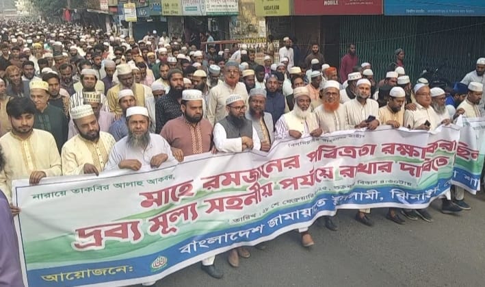 পবিত্র মাহে রমজানকে স্বাগত জানিয়ে ঝিনাইদহে জামায়াতে ইসলামী জেলা শাখার উদ্যোগে এক বর্ণাঢ্য র্যালি অনুষ্ঠিত হয়েছে। শুক্রবার বিকেলে পুরাতন ডিসি কোর্ট মসজিদ প্রাঙ্গণ থেকে শুরু হয়ে র্যালিটি শহরের প্রধান সড়কগুলো প্রদক্ষিণ করে স্বাধীন চত্বরে গিয়ে শেষ হয়।