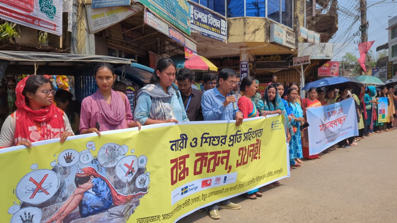 খাগড়াছড়িতে নারী ও শিশুর প্রতি সহিংসতার প্রতিবাদে মানববন্ধন