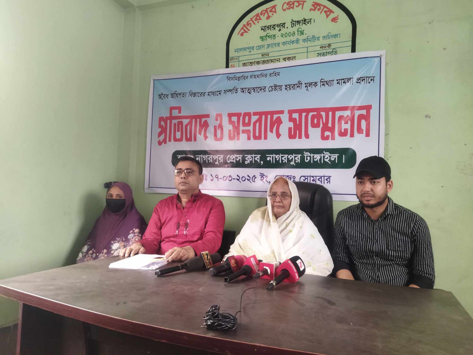 লিখিত বক্তব্যে তিনি বলেন, নাগরপুর সদরে অবস্থিত গরুহাটের উত্তর পাশে আমার নিজ বাড়ি সংলগ্ন আমার মেঝ মেয়ে জাহানারা আক্তার স্বামী মৃত সিরাজুল ইসলাম(ছানু) গ্রামঃ পাঁচ তারা, ডাকঘরঃ সলিল আড়রা, থানা নাগরপুর, জেলাঃ টাঙ্গাইল। বর্তমান ঠিকানাঃ গ্রামঃ বাবনা পাড়া, থানা: নাগরপুর, জেলা টাঙ্গাইল। আনুমানিক গত ২০১৪ সন হতে পৈতিক সম্পত্তিতে বসবাস করে আসছেন। বসবাস করা কালীন সময়ে আমার বড় ছেলে মরহুম কবির আহাম্মেদের দোকান দখল করে জাহানারা আক্তারের বড় ছেলে সিরাজ আল মাসুদকে ব্যবসায় বসানোর চেষ্টা করলে আমি ও আমার অন্য ছেলেরা মিলে তাকে পারবারিক ভাবে বাধাঁ প্রদান করি। পরে জাহানারা আক্তার আমার নিজ নামে পুকুরের চালায় রেকর্ড কৃত জমি আমার নিকট হইতে লিখে নেওয়ার আপ্রাণ চেষ্টা করে ব্যর্থ হইয়া জাল কাগজ করে দখলে যাওয়ার চেষ্টা চালায়। দখল করতে না পেরে দীর্ঘদিন যাবত আমাদের পরিবারের বিরুদ্ধে মিথ্যা ষড়যন্ত্র ও হয়রানি মূলক মিথ্যা মামলা দায়ের করে ক্ষতি সাধনের চেষ্টা সহ পারিবারিক মানহানি করার চেষ্টা করে যাচ্ছে। গত ২৭-০২-২০২৫ ইং তারিখ সময় আনুমানিক সন্ধা ০৬-১৫ মিনিটের দিকে আমার বড় ছেলে সন্তান এসএম মহিউদ্দিন মাহমুদ (মহন) নিজ বাড়ির দক্ষিণ পাশে নাগরপুর গরু হাটের মাঠে ক্রিকেট খেলে তিন চার জন বন্ধু-বান্ধব নিয়ে বসে বিশ্রাম করা কালীন সময়ে জাহানারা আক্তার ও তার ছোট ছেলে জাহিদ হাসান অবৈধ আধিপত্য বিস্তারে পারিবারিক শত্রুতার জের ধরে তাহাদের উঠে যেতে বলে । তখন এস এম মহিউদ্দিন মাহমুদ (মহন) মাঠ থেকে চলে না যাওয়ায় জাহানারা আক্তার ও তার ছোট ছেলে জাহিদ হাসান মহিউদ্দিন মাহমুদকে জানে মারার হুমকি প্রদান করলে তাদের মধ্যে মারামারীর ঘটনা ঘটে। এরই জের ধরে গত ২৭-০২-২০২৫ ইং তারিখে জাহানারা আক্তারের বড় ছেলে মোঃ সিরাজ আলম মাসুদ তাদের বাড়িতে একদল ডাকাত তাহার ছোট ভাই জাহিদ হাসানকে অস্ত্রের মুখে জিম্মি করে তার মাকে মারধর করে তাহার মায়ের স্বর্ণালংকার সহ নগদ ২,০০,০০০ (দুই লক্ষ) টাকা ডাকাতি করে নিয়ে গেছে এবং ঘটনা স্থলে তাহার ভাইয়ের থাকা মটরসাইকেল নেয়ার চেষ্টা করে এমন মিথ্যা বানোয়াট বক্তব্য তাহার নিজ ফেসবুক আইডি পোস্ট করে। যাহা সামাজিক যোগাযোগ মাধ্যমে ছড়িয়ে পড়লে নাগরপুর বাসির মধ্যে আতংক সৃষ্টি হয়। সেই সাথে জাহানা আক্তার বাদী হয়ে নাগরপুর থানায় আমার নাতি মহনের নামে একটি অভিযোগ দায়ের করে।