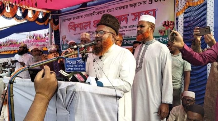 নিরপরাধ জামায়াত নেতাকর্মীদের বিরুদ্ধে দায়ের করা মিথ্যা মামলার প্রতিবাদে ঝিনাইদহের মহেশপুরে জামায়াতে ইসলামী’র উদ্যোগে এক প্রতিবাদ সভা অনুষ্ঠিত হয়েছে। মঙ্গলবার বিকেলে মহেশপুর উপজেলা স্টেডিয়াম মাঠে এই সভার আয়োজন করা হয়।