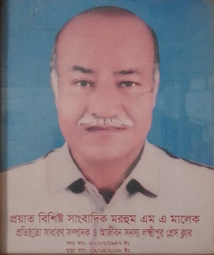 According to the information received from late MA Malek and his colleague s,he was founding General Secretary and life member of Lakshmipur press club. He was also served as the president of Districts Reporters Unity, Secretary of the Chamber Of Commerce, President Of the Managing Committee Of Collegiate High School, Lakshmipur. He served as the Bureau Chief Of the National Daily Bhorer Pata till the end of his life.