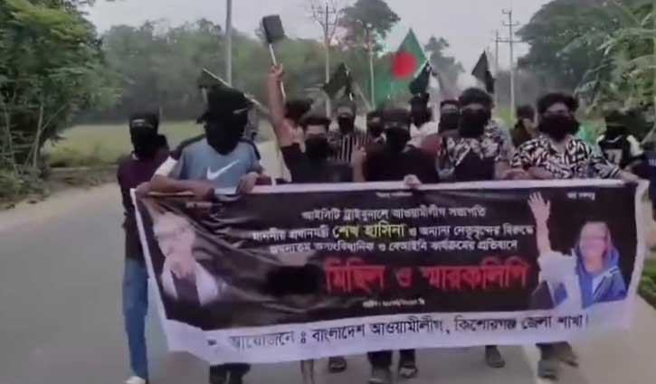 কিশোরগঞ্জে আ.লীগের ব‌্যানা‌রে ঝটিকা মিছিল
