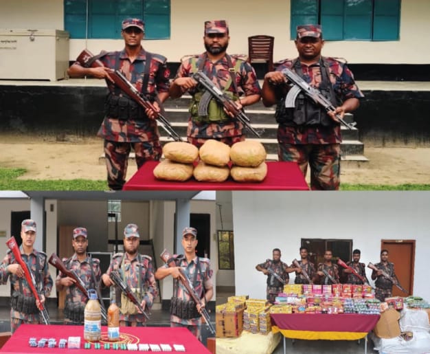 যশোরের বেনাপোল ও চৌগাছা সীমান্তে অভিযান চালিয়ে ৪০ লক্ষ ৬৩ হাজার ৯০০ শত ৫০ টাকা মূল্যের ভারতীয় গাঁজা, বাংলা মদ, শাড়ী, চকলেট, বিভিন্ন প্রকার বাজি, বিভিন্ন প্রকার ভারতীয় ঔষধ এবং কসমেটিক্স আটক করেছে বর্ডার গার্ড বাংলাদেশ বিজিবি সদস্যরা।