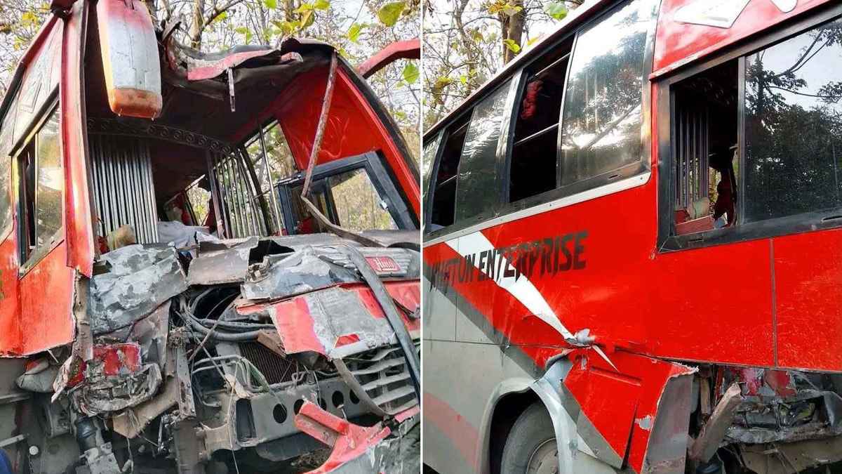 প্রত্যক্ষদর্শীরা জানান, ঢাকা থেকে ছেড়ে আসা পূর্বাশা পরিবহনের বাসটি নস্তি এলাকায় পৌঁছানোর পর রাস্তায় ইটভাটার মাটি ছড়িয়ে পড়ায় সড়ক পিচ্ছিল হয়ে যায়। এই পরিস্থিতিতে চালক বাসের নিয়ন্ত্রণ হারিয়ে ফেলেন। বাসটি সড়ক থেকে ছিটকে গিয়ে রাস্তার পাশে থাকা একটি বড় গাছের সঙ্গে সজোরে ধাক্কা লাগে। দুর্ঘটনার পর বাসের সামনের অংশ চুরমার হয়ে যায় এবং ভেতরে থাকা যাত্রীরা আটকে পড়েন। পরে ফায়ার সার্ভিসের কর্মীরা দ্রুত উদ্ধার কার্যক্রম চালিয়ে আহতদের বের করে আনেন।
