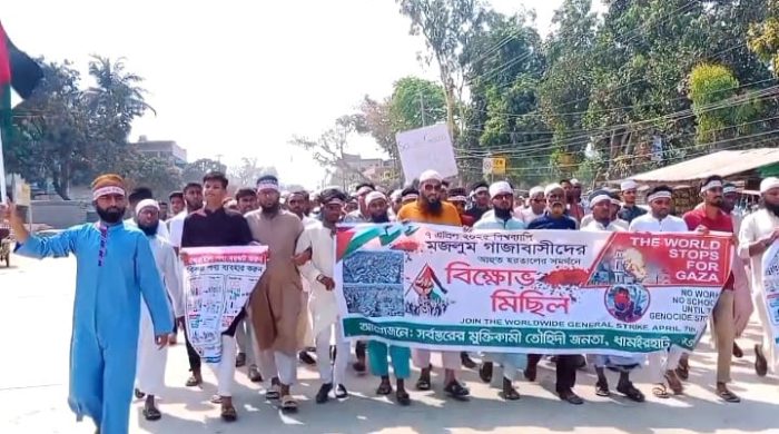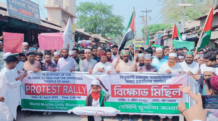 গাজায় ইসরায়েলের পক্ষ থেকে বর্বরোচিত হামলা, হত্যার প্রতিবাদে কুড়িগ্রামের উলিপুরে বিক্ষোভ মিছিল ও সমাবেশ অনুষ্ঠিত হয়েছে। ৭ এপ্রিল সোমবার জামায়াতে ইসলামী, বৈষম্যবিরোধী ছাত্র আন্দোলন, সাধারণ ছাত্র-জনতা, বিভিন্ন রাজনৈতিক ও সামাজিক