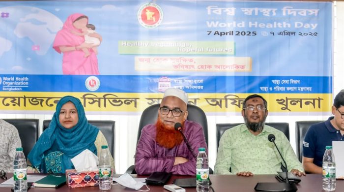 বিশ্ব স্বাস্থ্য দিবস উপলক্ষ্যে সোমবার সকালে খুলনা সিভিল সার্জন দপ্তরের সভাকক্ষে এক আলোচনা সভা অনুষ্ঠিত হয়। সভায় প্রধান অতিথি ছিলেন বিভাগীয় স্বাস্থ্য দপ্তরের পরিচালক ডা. মোঃ মনজুরুল মুরশিদ। আলোচনা সভায়