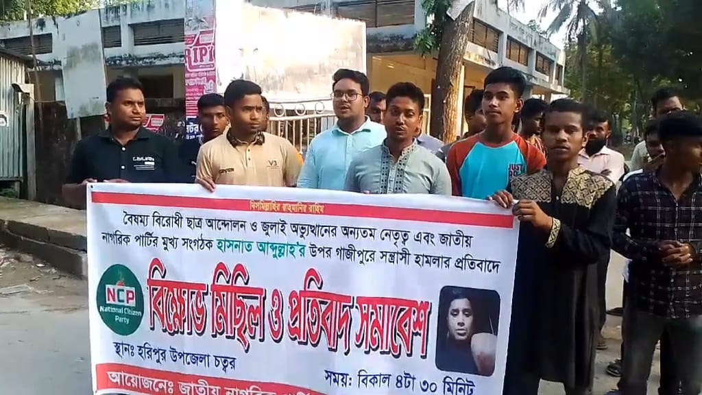 ঠাকুরগাঁওয়ের হরিপুর উপজেলায় ৬ই মে মঙ্গলবার হাসনাত আবদুল্লাহর উপর সন্ত্রাসী হামলার প্রতিবাদে হরিপুরে এক বিক্ষোভ মিছিল ও প্রতিবাদ সমাবেশ অনুষ্ঠিত হয়।
