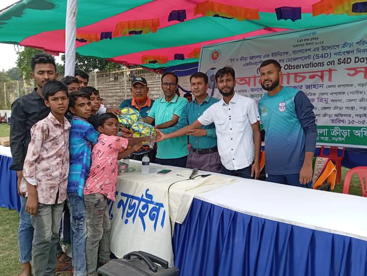 তারুণ্যের উৎসব ২০২৫ উদযাপন উপলক্ষ্যে নড়াইলে ফুটবল প্রশিক্ষন-২০২৫ এর সমাপনী ও সনদপত্র বিতরণ অনুষ্ঠিত হয়েছে।